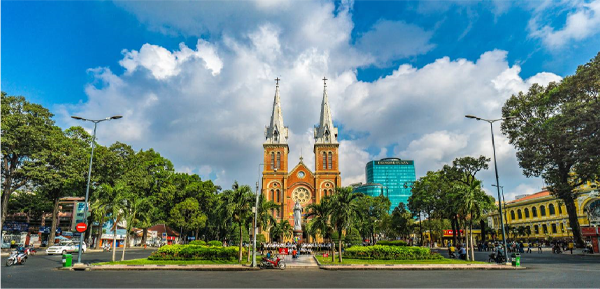 ชมสถาปัตยกรรมสวยๆ สไตล์ยุโรปในโฮจิมินห์ อีกหนึ่งสถานที่ที่พลาดไม่ได้ก็คือ โบสถ์นอร์เทรอดาม ตั้งอยู่บริเวณจัตุรัสฝรั่งเศส เป็นวิหารนิกายโรมันคาทอลิกที่เก่าแก่และใหญ่ที่สุดในเวียดนาม มีหอคอยคู่ ศิลปะแบบนีโอโรมันเป็นจุดเด่น โดยเป็นการสร้างตามแบบวิหารนอร์เทรอดามแห่งกรุงปารีส ประเทศฝรั่งเศสนั่นเอง
