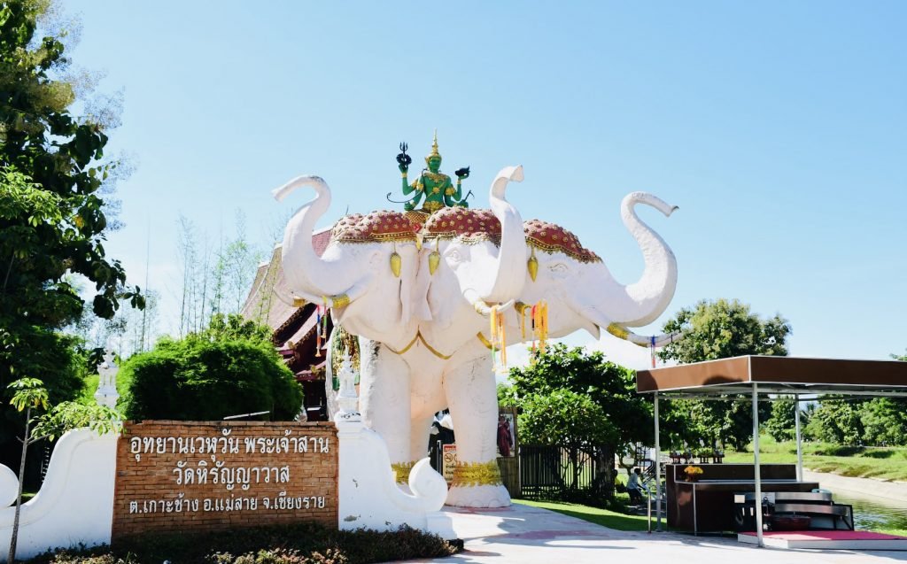 วัดหิรัญญาวาส อุทยานเวฬุวัน เป็นวัดสังกัดคณะสงฆ์ฝ่ายมหานิกาย อยู่ที่บ้านเหมืองแดงน้อย ต.เกาะช้าง อ.แม่สาย จ.เชียงราย เป็นที่พัฒนาเป็นพุทธอุทยาน สามารถไปชมบรรยากาศ ไปทำบุญไหว้พระ และไปทำกิจกรรมอื่น ๆ ได้ด้วย โดยเฉพาะพระเจ้าสานปางมารวิชัยที่ใหญ่ที่สุดในประเทศไทย ซึ่งเป็นจุดเด่นของวัดนี้อยู่ที่พระประธานในวิหาร สานด้วยไม้ไผ่ หน้าตักกว้าง 9.9 ศอก สูง 19 ศอก เป็นพระพุทธรูป ลักษณะพระสิงห์หนึ่งเชียงแสน ศิลปะแบบล้านนาที่สร้างด้วยไม้ไผ่ทั้งองค์ ใช้เวลาสร้าง 99 วัน ใช้ไม้ไผ่ทั้งหมด 39,000 ท่อน ชื่อว่า " พระสิงห์สานชนะมาร " เคลือบเงาดำด้วยยางของตันรัก และที่สำคัญ ไม้ไผ่ที่นำมาสานก็มีแหล่งที่มา น่าค้นหา จากการสอบถาม ทราบว่าพระครูหิรัญอาวาสวัตร เจ้าอาวาสวัดหิรัญญาวาส ท่านได้นำไม้ชนิดนี้มาจากประเทศพม่า ซึ่งเป็นไม้มงคล มีถิ่นกำเนิดอยู่บนเขาสูงมีชื่อตามท้องถิ่นว่า " ไม้มุง " เป็นไม้ในตระกูลไผ่ชนิดหนึ่ง ลักษณะเด่นคือเหนียว มอดไม่กิน เหมาะสำหรับมาสานเป็นพระพุทธรูป โดยในหนึ่งปี ชาวบ้านที่ดูแลไม้มุง จะให้ตัดไม้นี้ได้แค่ครั้งเดียว ในวันขึ้น 15 ค่ำ เดือน 3 เท่านั้น และทางพม่าเองก็จะมีการเสี่ยงทายเป็นผู้กำหนดว่าแต่ละปี วัดไหนที่ขอไป จะโชคดีเป็นผู้ได้สิทธิ์ตัดไม้ไผ่ชนิดนี้