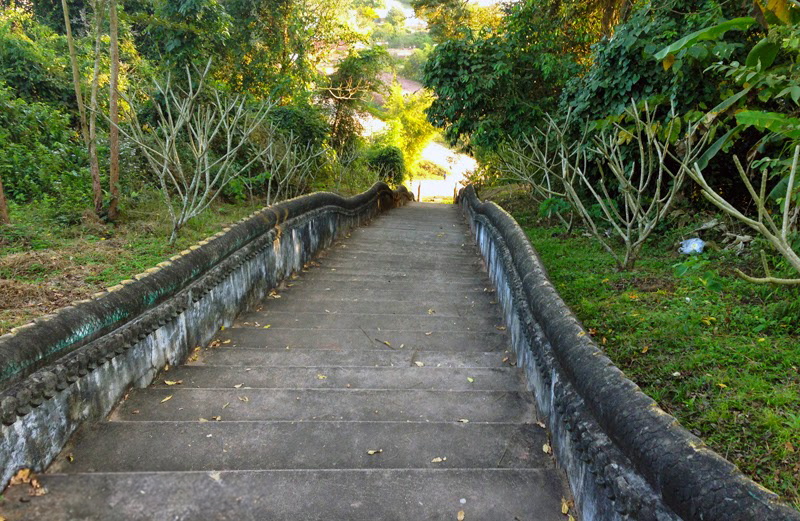 อีกทางหนึ่งคือการเดิน โดยที่เชิงเขาด้านหน้าองค์พระธาตุมีบันไดนาคสูงพอสมควร เหมาะสำหรับคนที่ศรัทธาแรงกล้า และพอมีเรี่ยวแรงอยู่บ้าง เพราะการเดินขึ้นไปกราบพระธาตุสามารถเรียกเหงื่อได้ดีทีเดียว
