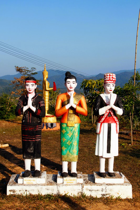 ด้านหน้าองค์พระธาตุ มีรูปปั้น 3 ชนเผ่า เป็นสัญลักษณ์ที่บ่งบอกเอกลักษณ์ของเมืองหลวงน้ำทาว่าเป็นเมืองที่ประกอบด้วยหลายชนเผ่าที่อาศัยอยู่ร่วมกันอย่างกลมกลืน ถือเป็นจุดเด่นด้านการท่องเที่ยวของเมืองหลวงน้ำทา โดยเฉพาะฝรั่งที่ชอบมาเที่ยวชมวิถีชีวิตของชาวบ้านที่เป็นชนเผ่าต่างๆ ตามหมู่บ้านที่อยู่ห่างตัวเมืองออกไป รวมถึงการท่องเที่ยวเชิงผจญภัย อย่างเช่นการล่องแก่ง ล่องแพตามลำน้ำทา
