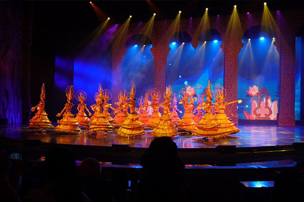 ๒. นกยูงนำโชค (The Auspicious Peacock) ฉากภาคพื้นดินที่มีนกยูงนับพันตัว เขาใช้ชุดคนแสดงแต่งตัวเป็นนกยูง ถือว่าเป็นจุดสำคัญของแคว้นนี้ทีเดียว มองไปทุกหนทุกแห่งจะเห็นป้ายโฆษณาชุดสาวน้อยงาม เต็มไปด้วยเสน่ห์ แต่งกายเป็นนกยูง สวยงาม น่าดู น่าชม