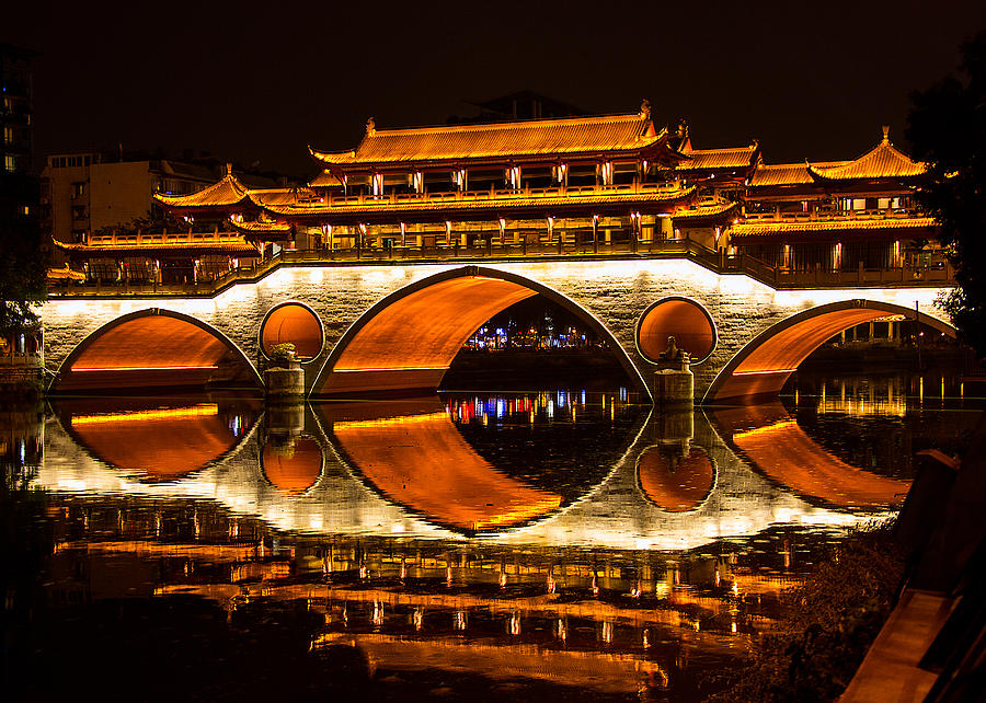 สะพานอันชุน ถูกสร้างขึ้นในปี ค.ศ 1746 เพื่อให้ประชาชนใช้ข้ามแม่น้ำจินเจียง แต่ถูกน้ำท่วมทำลาย จึงสร้างขึ้นใหม่ในปี ค.ศ. 2003 มีความยาวทั้งหมด 81 เมตร ปัจจุบันเป็น ที่เที่ยวเมืองเฉิงตู ที่คนนิยมมาถ่ายรูป เพราะเป็นสะพานเก่าแก่ที่มีลักษณะโดดเด่นคือ มีหลังคาทรงจีนอยู่ด้านบน สร้างตามแบบสมัยราชวงศ์หมิง และราชวงศ์ชิง มีการแกะสลักลวดลายอย่างงดงาม มีประติมากรรมรูปสัตว์ในตำนานาต่างๆ เช่น มังกร สิงโต และฟีนิกซ์ ตอนกลางคืนเปิดไฟสว่างไสว มีร้านค้าและร้านอาหารเปิดให้บริการตลอดริมฝั่งแม่น้ำ เหมาะมากสำหรับการปิดท้ายวัน มานั่งชมวิว เดินเล่น หาของอร่อยกิน ก่อนกลับโรงแรมไปพักผ่อน