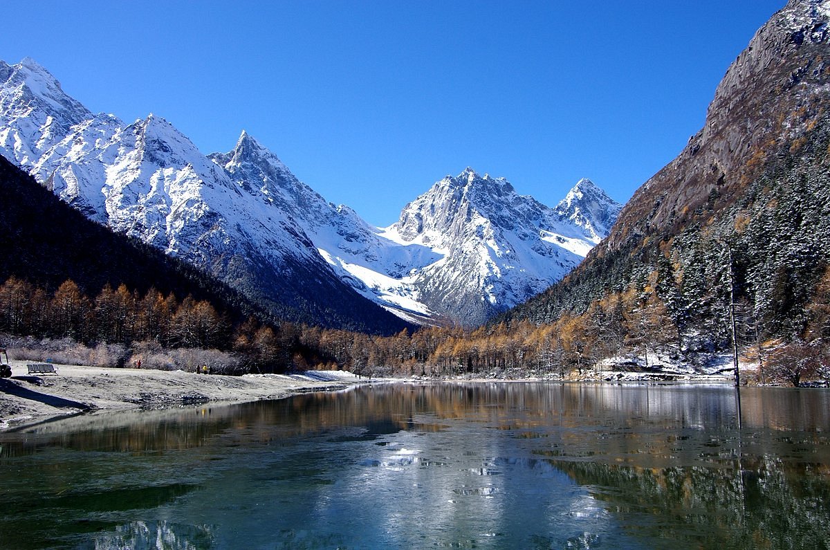 ภูเขาสี่ดรุณี เป็นหนึ่งในที่เที่ยวที่กำลังมาแรง ด้วยความสวยงามของธรรมชาติ อยู่ห่างจากเมืองเฉิงตูประมาณ 220 กิโลเมตร ได้ฉายาว่าเป็น “ภูเขาแอลป์แห่งแผ่นดินจีน” ด้วยลักษณะที่เป็นยอดเขาสูงชัน และมีหิมะปกคลุมตลอดทั้งปี เหมือนกับเทือกเขาแอลป์ในยุโรป สาเหตุที่ได้ชื่อนี้ก็เพราะประกอบไปด้วยภูเขา 4 ลูก ได้แก่ ต้ากูเหนียงซาน ที่มีความสูงมากที่สุด อยู่ที่ 6,250 เมตรจากระดับน้ำทะเล ตามมาด้วย เออร์กูเหนียงซาน, ซานกูเหนียงซาน และซื่อกูเหนียงซาน ที่มีความสูงลดหลั่นกันลงมา มีเส้นทางท่องเที่ยวให้เลือกหลากหลาย ชวนให้เพลิดเพลินไปกับความสวยงามของธรรมชาติรูปแบบต่างๆ ที่ถูกรวมไว้ในที่เดียว