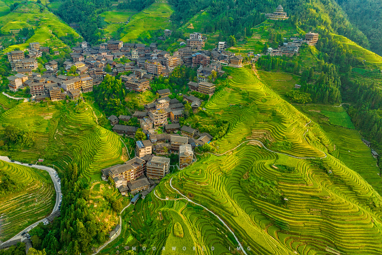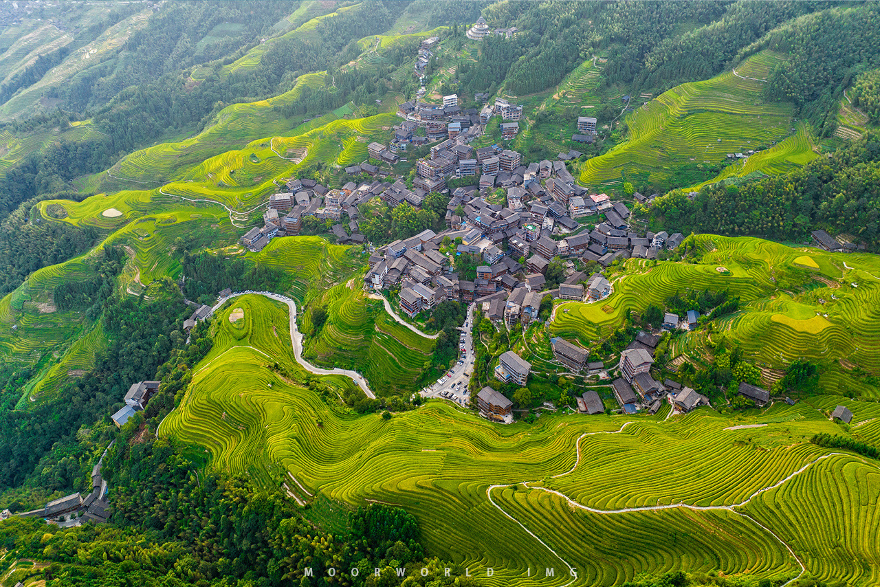 ที่สุดของจุดชมวิวที่ต้องแวะขึ้นมาชม เพราะจากจุดนี้ทำให้เรามองเห็นนาขั้นบันไดในอีกมุมมอง ซึ่งตรงนี้เป็นที่อยู่อาศัยของชาวจ้วง (Zhuang Minority) มีความเก่าแก่ดั้งเดิมมากที่สุด แต่ก็ได้รับการพัฒนาและมีการปรับปรุงพื้นที่มาตลอด มีทั้งที่พักอาศัย ร้านอาหาร บาร์ และคาเฟ่ มีสิ่งอำนวยความสะดวกครบครัน เดินทางมาง่าย ทำให้จุดนี้มีนักท่องเที่ยวแวะมาชมความงดงามอย่างไม่ขาดสาย