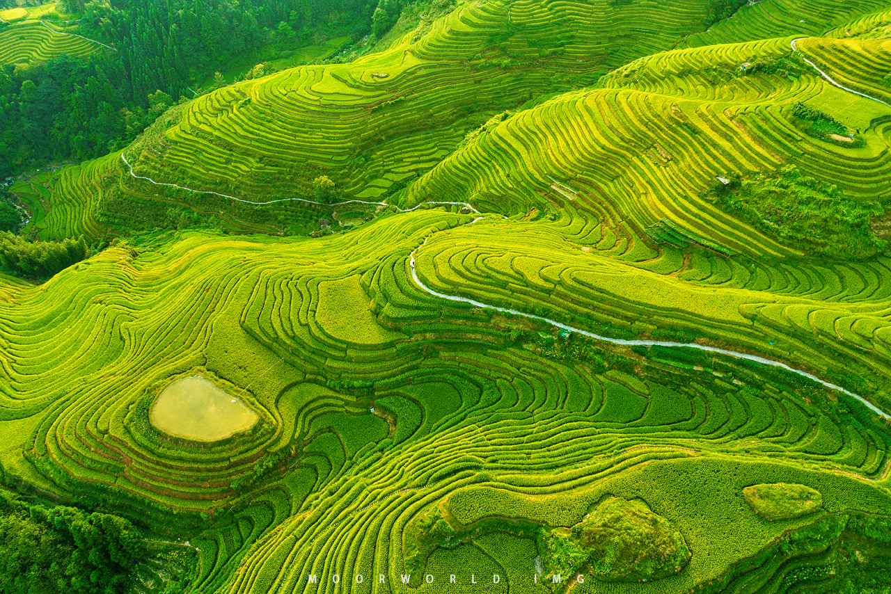 ที่พีคไปกว่านั้นตรงนี้ยังมีอีก 2 จุดไฮไลท์ที่ไม่ควรพลาด ก็คือ พระจันทร์และดวงดาวทั้งเจ็ด (Seven Stars Accompany the Moon) กองหินเจ็ดก้อนที่ยังคงเหลืออยู่จากการพัฒนาพื้นที่ โดยมีนาขั้นบันไดรูปทรงคล้ายพระจันทร์อยู่ตรงกลาง เมื่อมองจากระยะไกลจึงดูเหมือนกับดาวเจ็ดดวงที่ส่องแสงท่ามกลางดวงจันทร์นั่นเอง กับอีกจุดที่ยอดฮิตไม่แพ้กัน เก้ามังกรและห้าเสือ (Nine Dragons and Five Tigers) สันเขาเก้าสัน แตกแยกย่อยออกมาจากสันเขาหลัก ดูแล้วคล้ายกับมังกรกำลังเลื้อยไปดื่มน้ำที่แม่น้ำจินซา (Jinsha River) ส่วนด้านข้างมีโขดหิน ก็จินตนาการได้ว่าเป็นเสื้อห้าตัวนั่นเอง ได้ยินแบบนี้แล้วต้องคาราวะคนต้นคิดจริงๆ